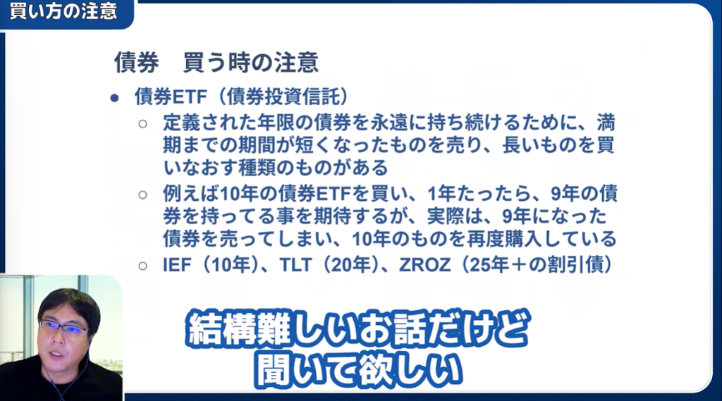 「○年満期の債券に投資」とうたうETFでも、実際には満期を迎える前に再投資を繰り返す構造になっている場合があり、価格変動に注意が必要です。常に「本当に満期まで保有するのか」「どのような再投資戦略なのか」を確認しましょう。